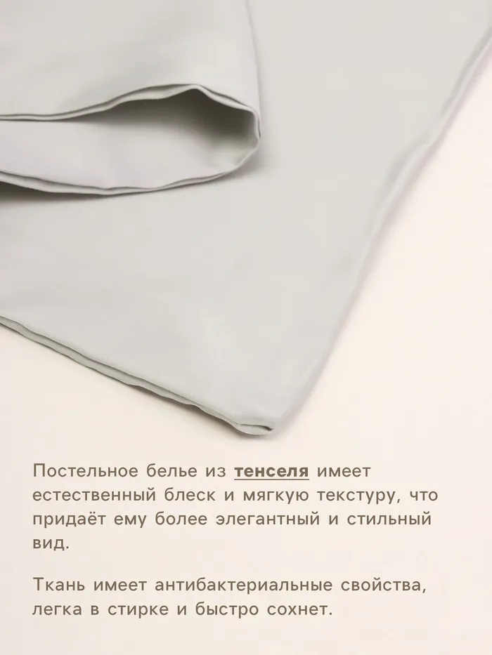 Простыня из тенселя светло-серого цвета станет идеальным выбором для вашего комфортного сна в любое время года. Тончайшее эвкалиптовое волокно обеспечивает приятные тактильные ощущения и способствует естественной терморегуляции.