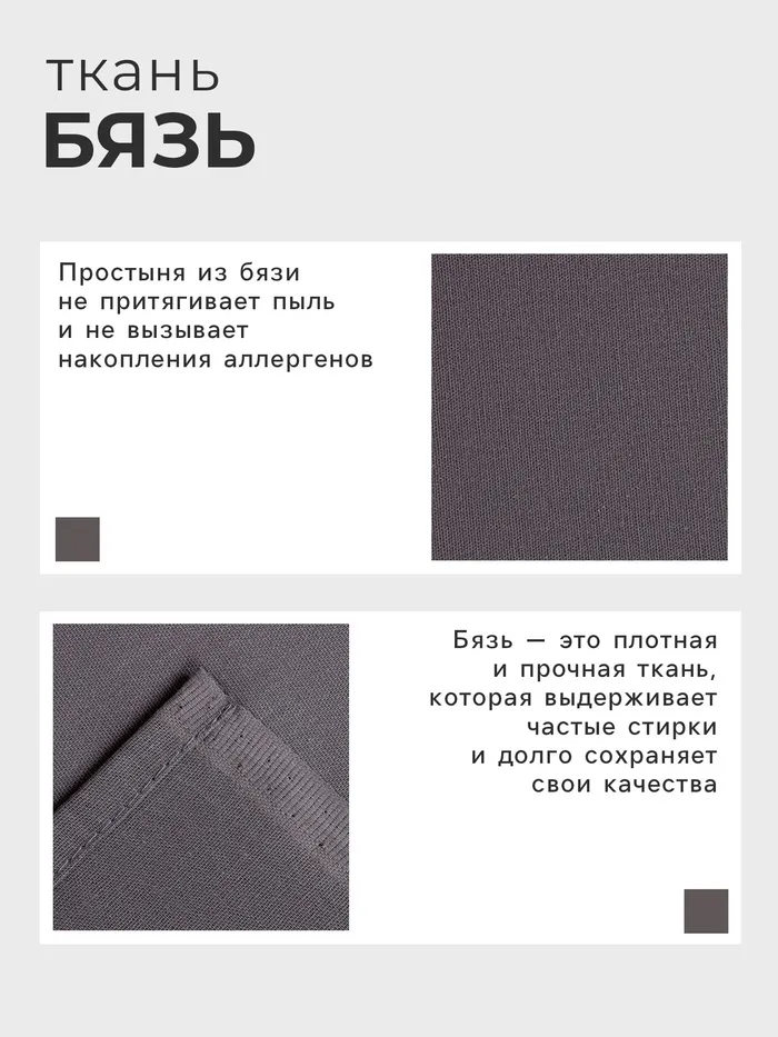 Простыня евро «Этель», 220×240 см, серая, хлопок 100%, бязь — Характеристики