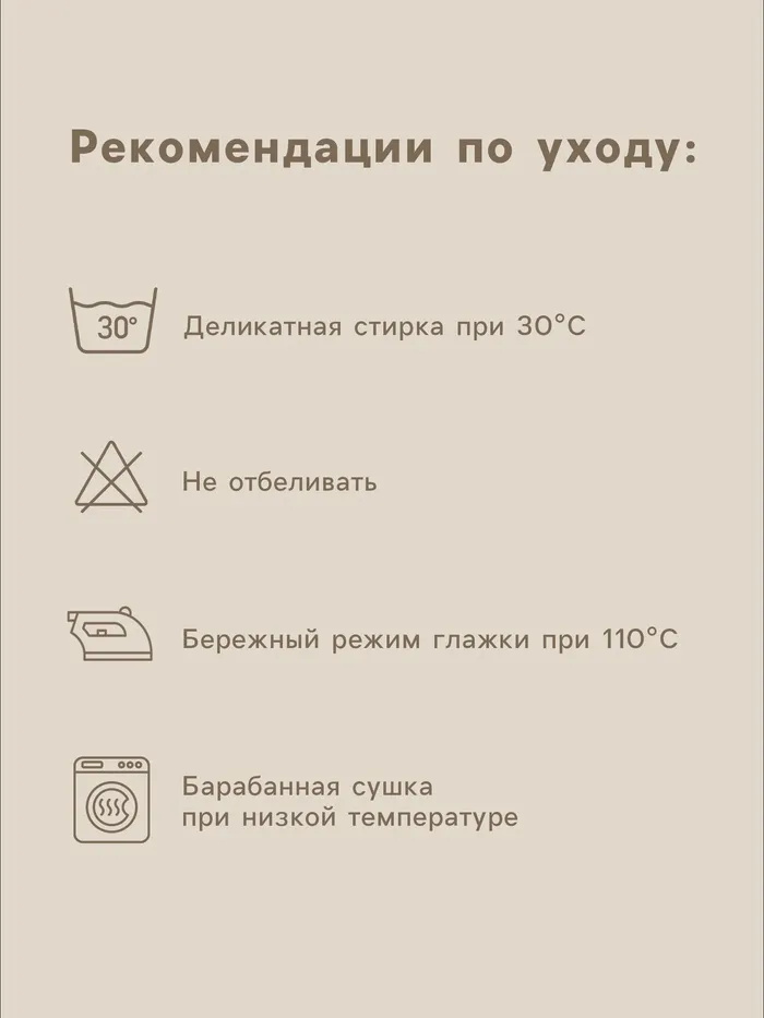 Рекомендации по уходу: Стирка при 30 °С