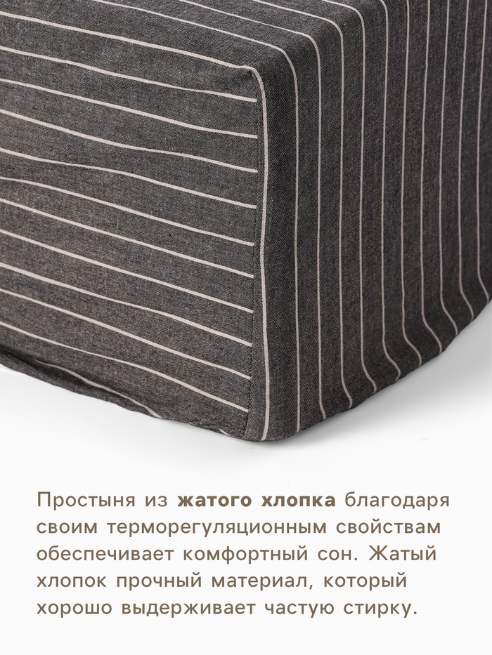 Простыня на резинке 1.5-спальная «Этель» Quiet shade, 140×200+25 см, жатый хлопок — Характеристики