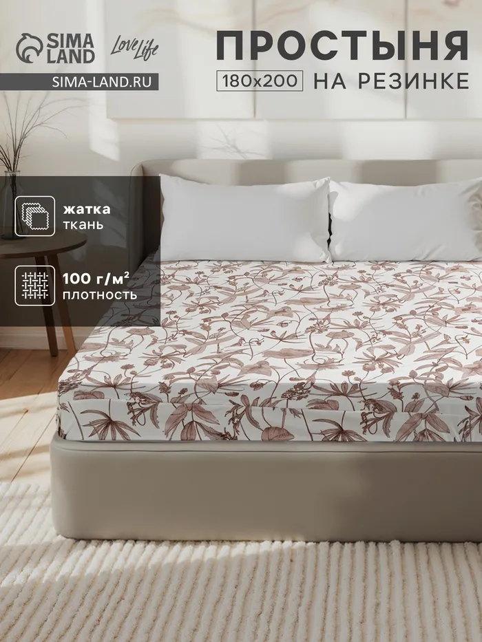 Простыня на резинке 2-спальная «Атра. Вестерн», 160×200+20 см, пудровая, бязь — Характеристики