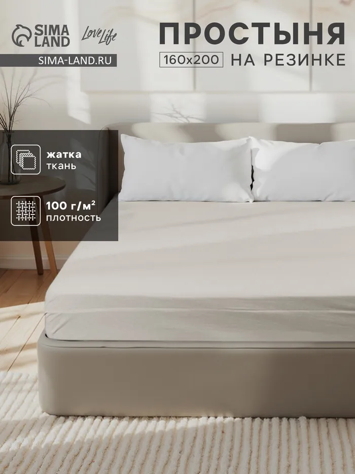 Простыня на резинке 2-спальная LoveLife, 160×200+25 см, зелёная, жатка — Характеристики