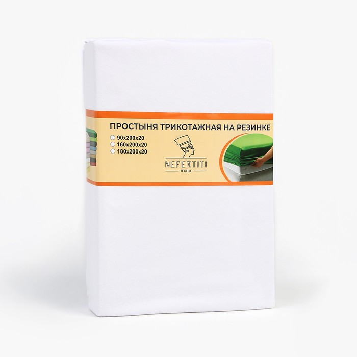 Простыня на резинке 2-спальная Nefertiti, 160×200+20 см, белая, кулирка — Характеристики