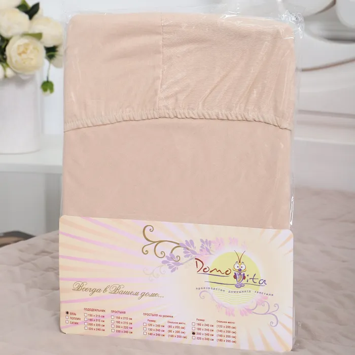 Простыня на резинке Атра 180х200х20, цвет бежевый бязь 120г/м, хлопок — Характеристики