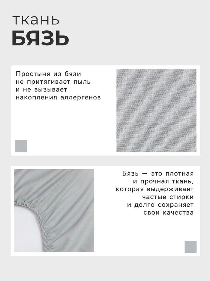 Простыня на резинке Этель 160х200х25, цвет серо-зелёный, 100% хлопок, бязь 125г/м2 — Характеристики