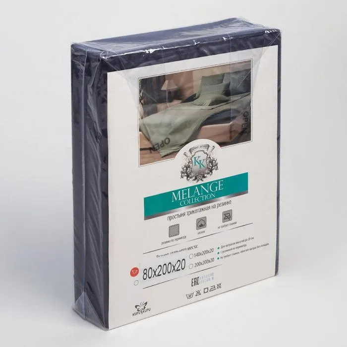 Простыня на резинке евро KUPU-KUPU, 200×200+20 см, графит, трикотаж — Характеристики