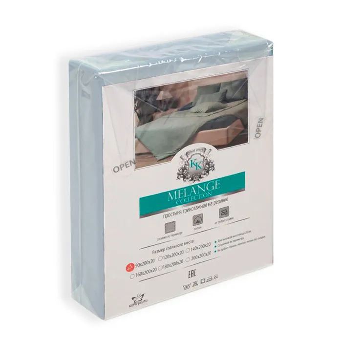 Простыня на резинке «Купу-купу», 90х200х20 см, голубой, трикотаж — Характеристики