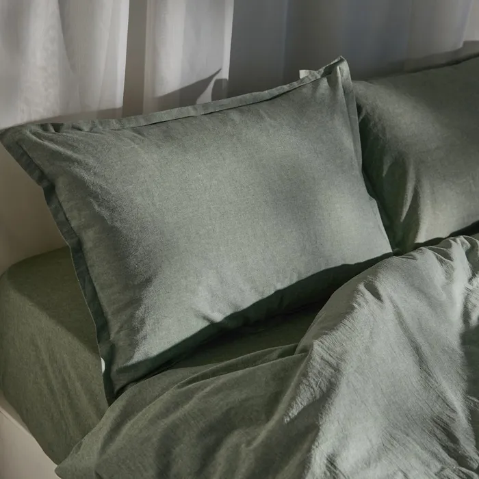 Простыня на резинке SL Home "Деним" 200*200+30 см, цв.оливковый, 100% жатый хлопок — Характеристики