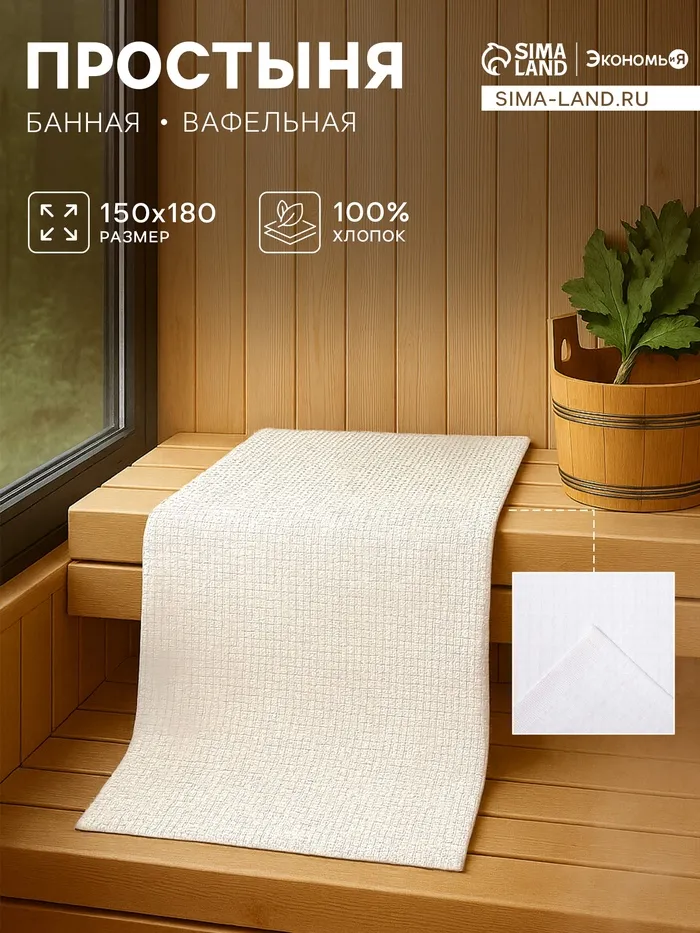 Простыня вафельная для бани Экономь и Я 150х180 см, цвет белый, 100% хлопок, 200 г/м2 — Характеристики