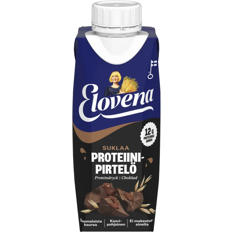 Elovena протеиновый коктейль – это быстрый и вкусный перекус в течение напряженного дня. Он отлично подходит как до, так и после тренировки. Шоколадный протеиновый коктейль полностью растительный и произведен в Финляндии с использованием углерод-нейтральной энергии из 100% безглютенового овса.