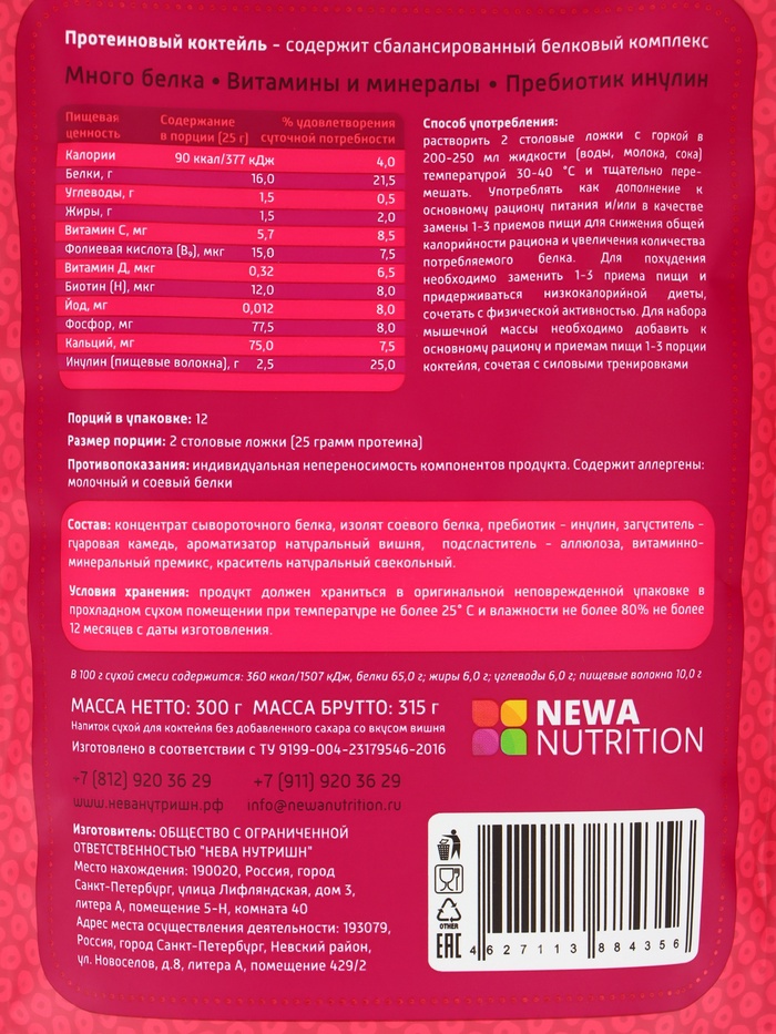 Протеиновый коктейль с вишневым вкусом, 300 г — Характеристики