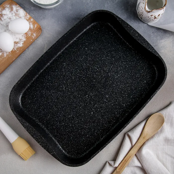 Противень, 40×29,5×5 см, антипригарное покрытие, цвет тёмный мрамор — Характеристики