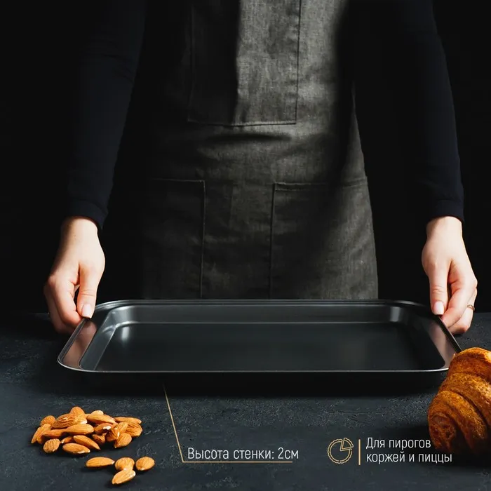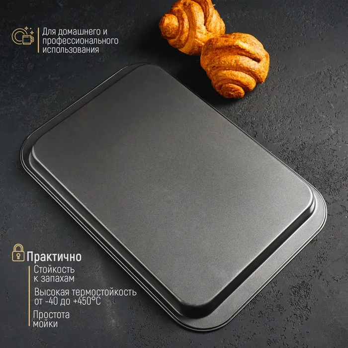 Противень Доляна «Жаклин. Прямоугольник», 25.7×37.5×2 см, антипригарное покрытие, чёрный — Характеристики