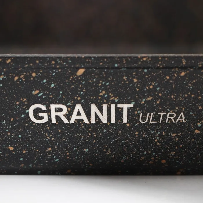 Ultra granit — это инновационное, невероятно прочное покрытие, усиленное сверхтвёрдыми минералами нового поколения, близкими по твёрдости алмазу. Его прочность позволяет использовать даже металлические кухонные принадлежности без риска повредить поверхность. Покрытие Ultra granit продлевает срок службы посуды более чем в 7 раз!