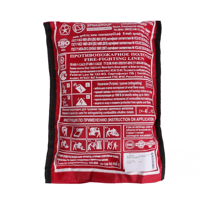 Противопожарное полотно, кошма пожарная, ПП-600-1, 1,5×2 м, до 600°C — Характеристики