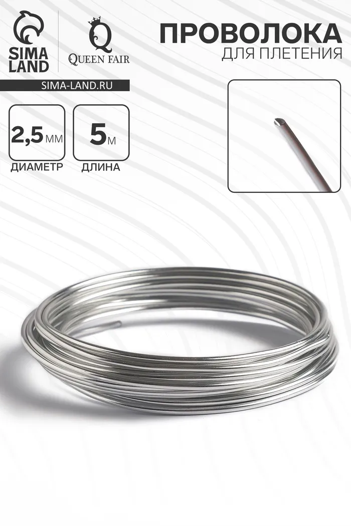 Проволока для плетения d=2.5 мм, намотка 5 м, цвет серебро — Характеристики