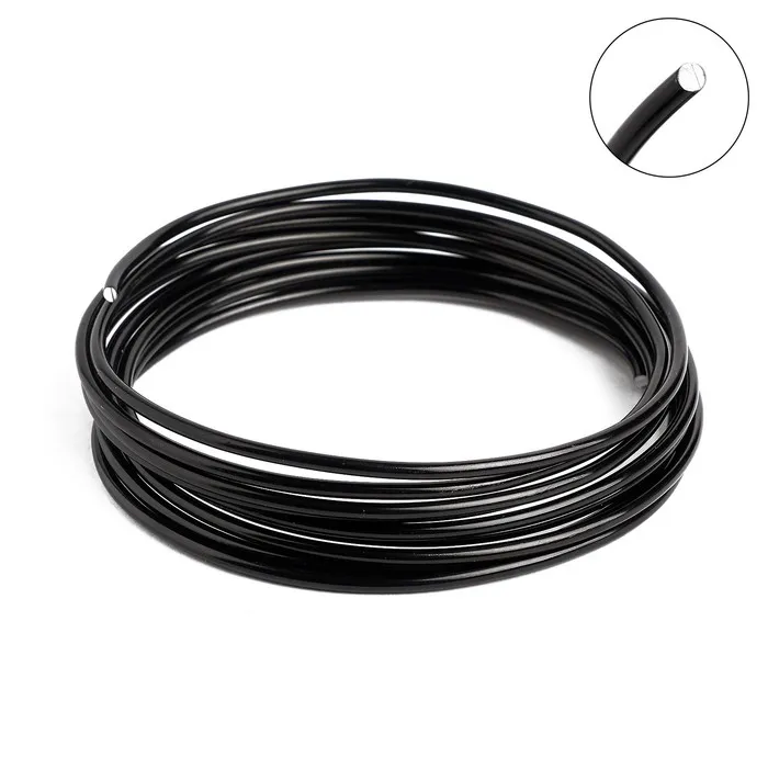 Чёрный цвет проволоки придаёт изделиям стильный и универсальный вид, который хорошо сочетается с другими материалами, такими как камни, бусины, ткани или фурнитура. Проволока диаметром 3 мм обладает отличной прочностью и стойкостью, что делает её идеальной для создания долговечных украшений и аксессуаров.