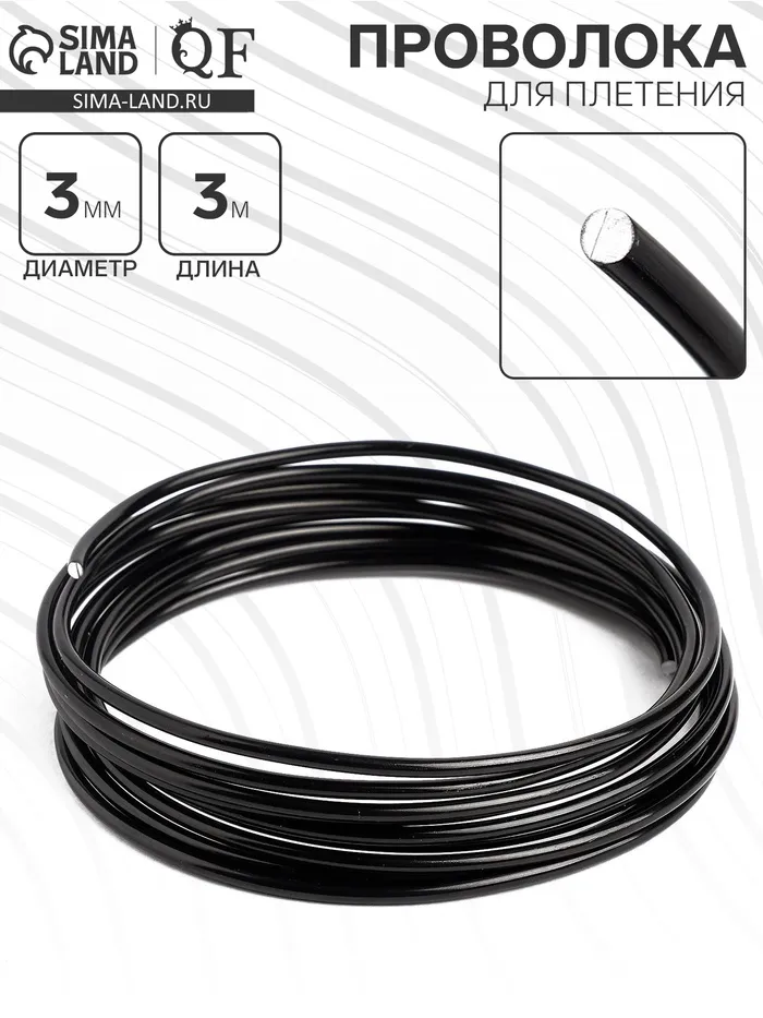 Проволока для плетения, диаметр 3 мм, намотка 3 м, цвет чёрный — это высококачественная проволока, идеально подходящая для различных видов рукоделия и создания украшений. Она обладает достаточной жесткостью и гибкостью, что делает её удобной для работы в технике плетения, создания обручей, браслетов, колье, а также других декоративных элементов.