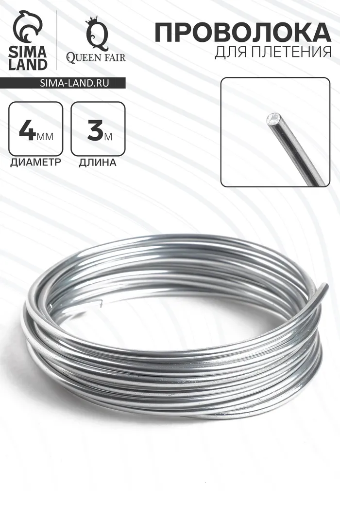 Проволока для плетения d=4 мм, намотка 3 м, цвет серебро — Характеристики