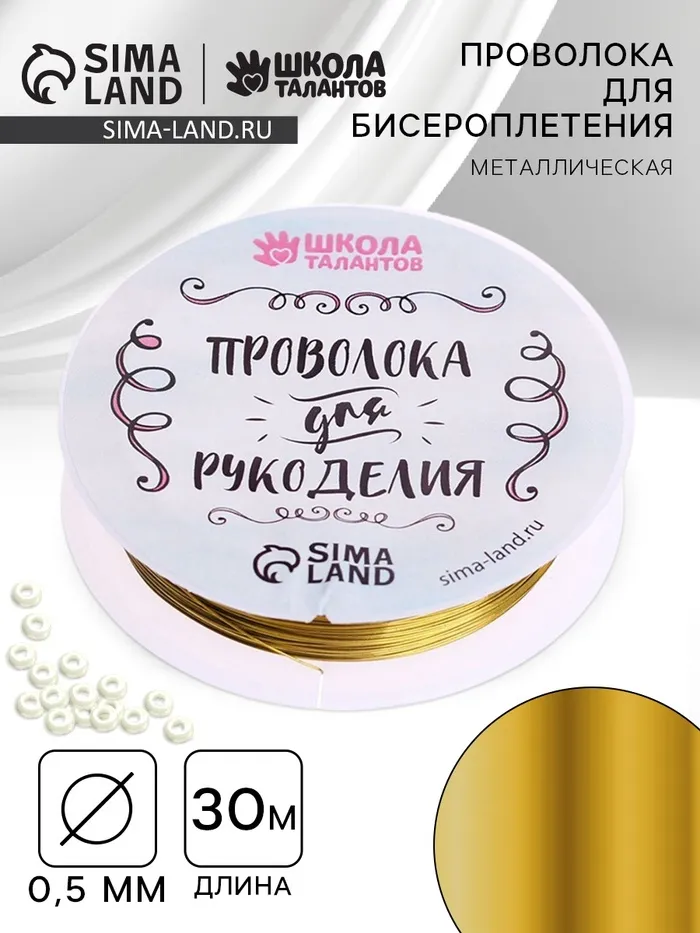 Проволока для творчества и бисероплетения, d=0.5 мм, 30 м, золотой — Характеристики