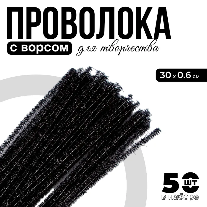 Проволока с ворсом для поделок «Блеск», набор 50 шт., размер 1 шт. 30 × 0,6 см, цвет чёрный — Характеристики