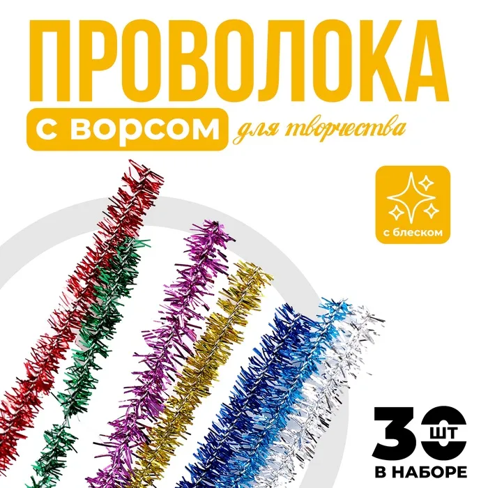 Проволока с ворсом для поделок и декорирования, набор 30 шт., цвета МИКС с блеском — Характеристики