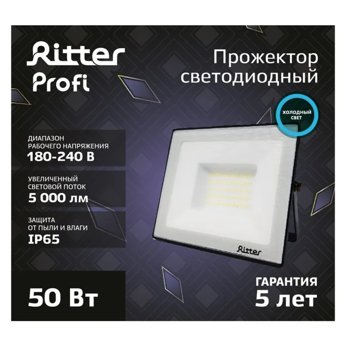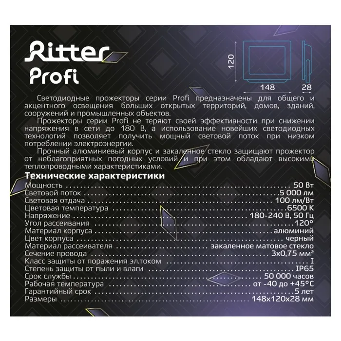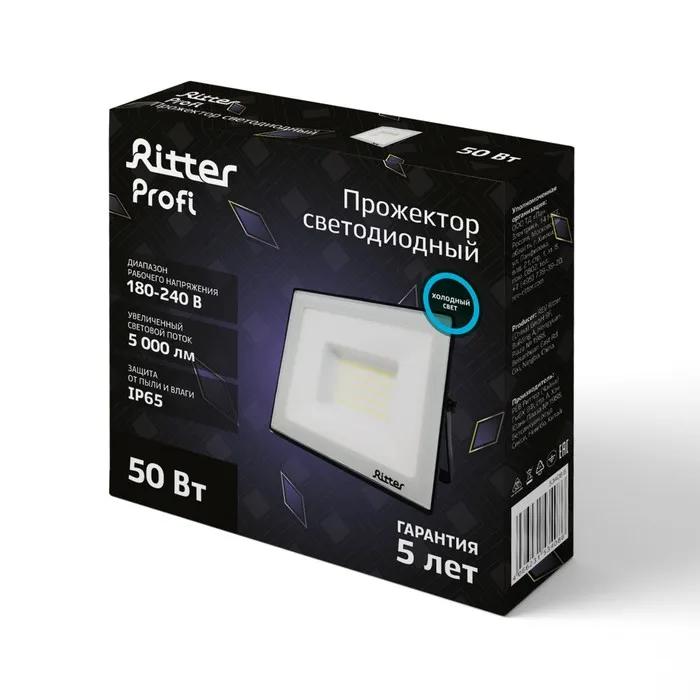 Прожектор светод серия PROFI, 230В, 50Вт, 6500К, 5000Лм, IP65, черн, гарантия 5 лет 53408 6 — Характеристики