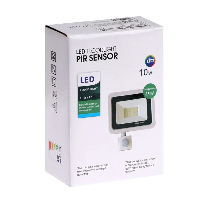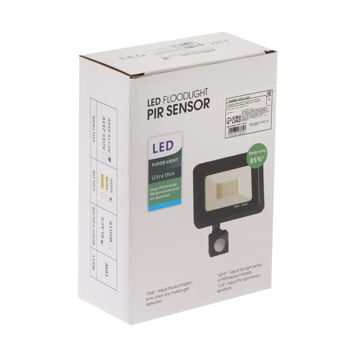 Прожектор светодиодный, 10 Вт, 900 Лм, 6500К, Датчик движения, IP66, — Характеристики