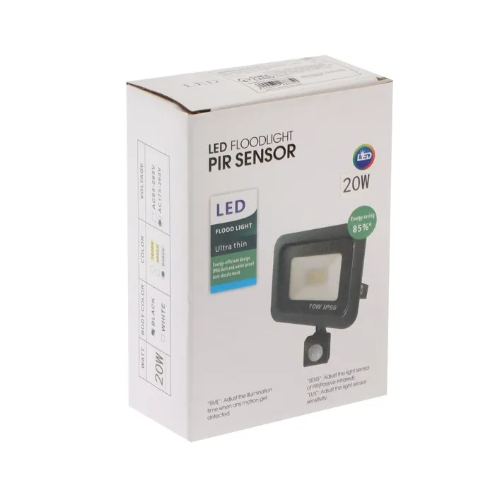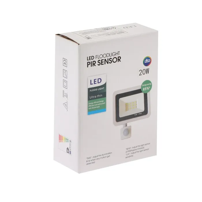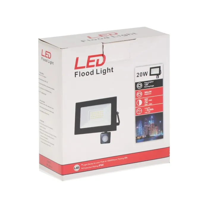 Прожектор светодиодный, 20 Вт, 1800 Лм, 6500К, Датчик движения, IP66