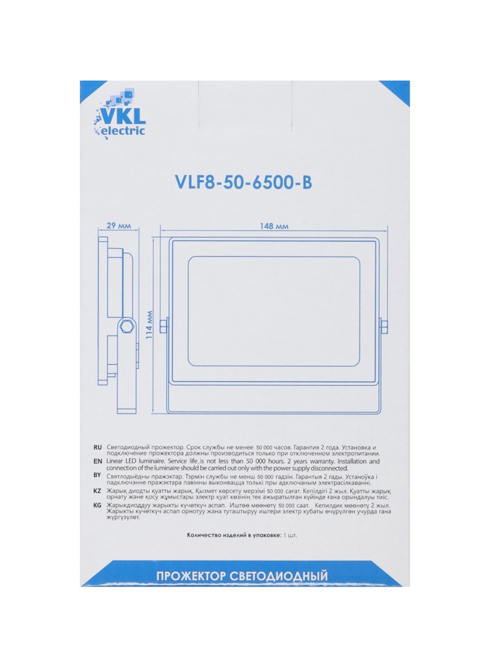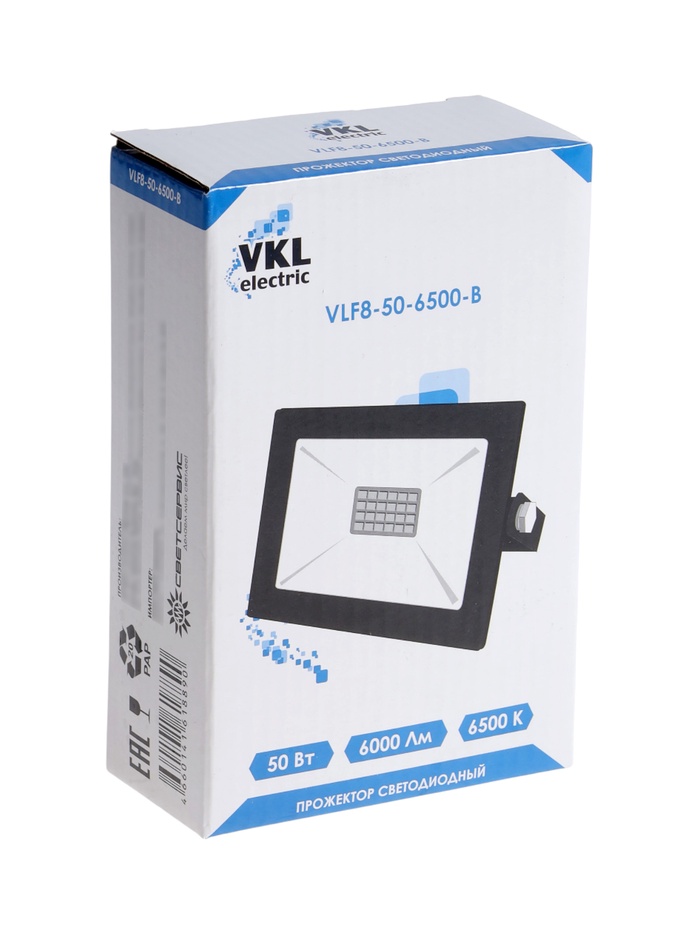 Прожектор светодиодный VKL Electric, 50 Вт, 6000 лм, 6500К, IP65, 220 В чёрный, свечение холодное белое — Характеристики