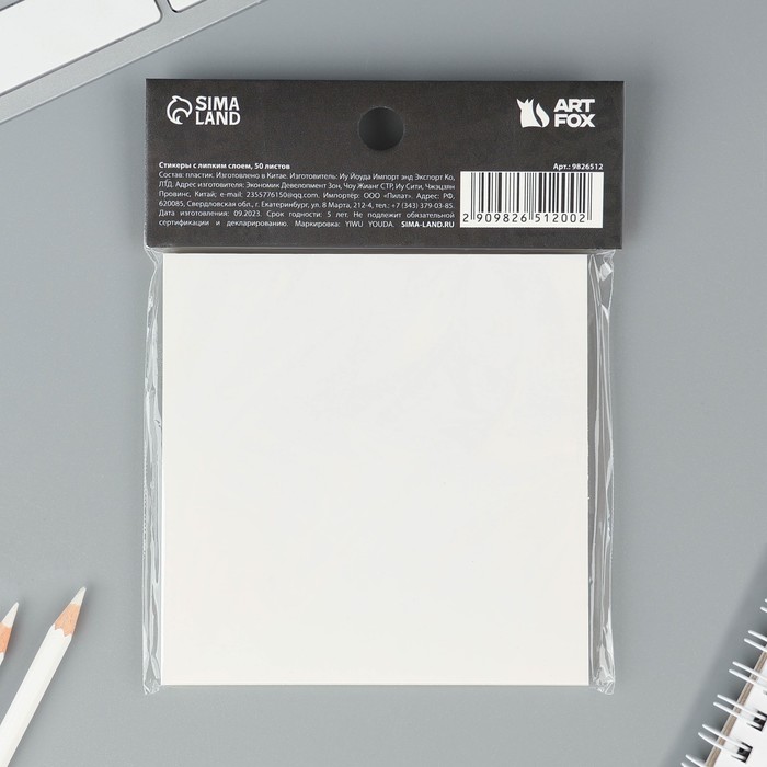 Прозрачные стикеры с липким слоем 75×75 мм, 50 листов ArtFox — Характеристики