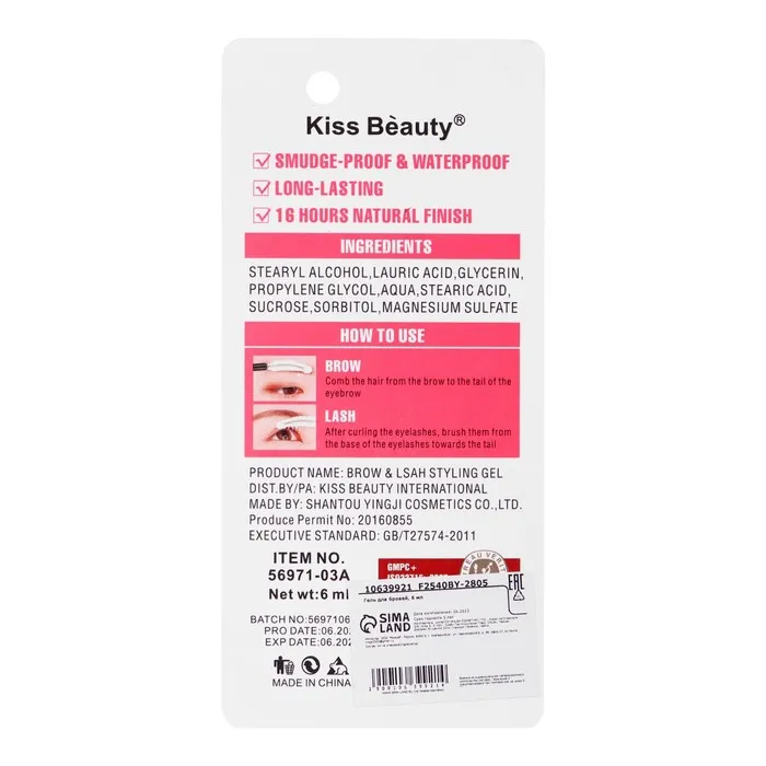 Способ применения: нанесите небольшое количество геля и уложите брови короткими движениями вверх по направлению роста волос. Оставьте до полного высыхания.