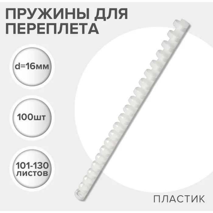 Пружины для переплета пластиковые, d=16 мм, 100 штук, сшивают 101-130 листов, белые, Гелеос — Характеристики