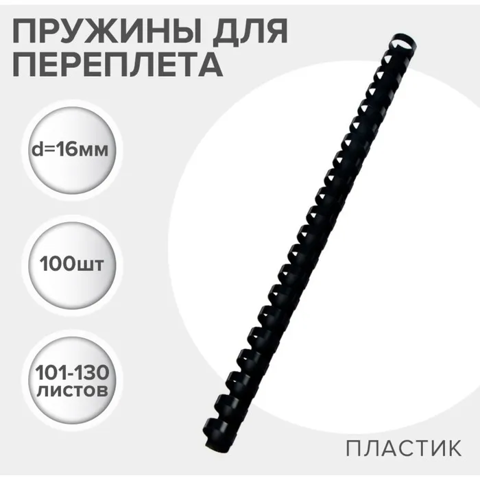 Пружины для переплета пластиковые, d=16мм, 100 штук, сшивают 101-130 листов, чёрные Гелеос — Характеристики
