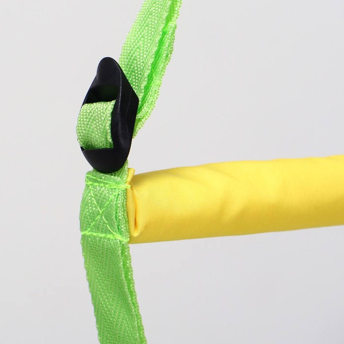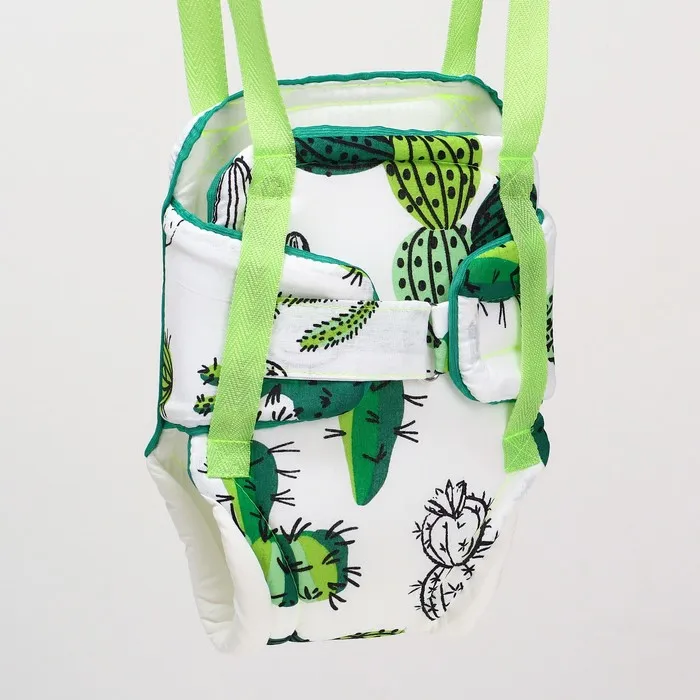Посадите полугодовалого кроху в сиденье-штанишки. Малышу понравится активная игра, он будет подпрыгивать и качаться. Размер посадочного места можно настроить индивидуально, а за перекладину ребёнку будет удобно держаться.