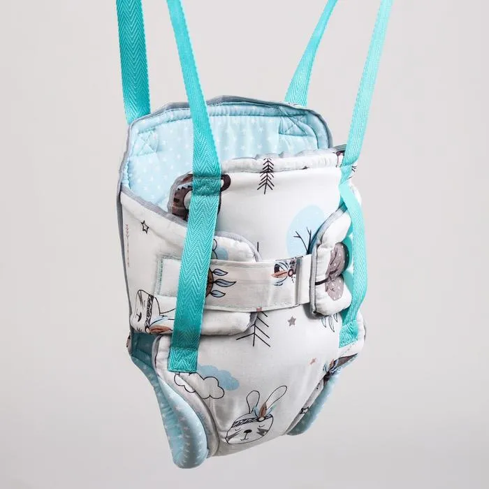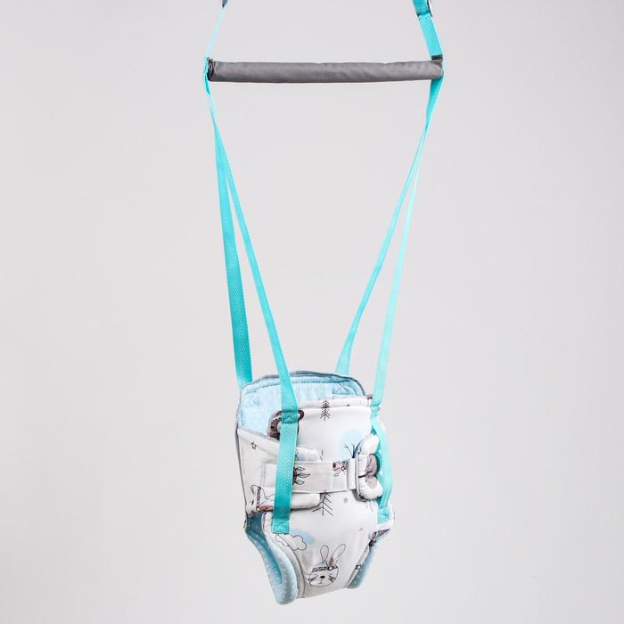 Посадите полугодовалого кроху в сиденье-штанишки. Малышу понравится активная игра, он будет подпрыгивать и качаться. Размер посадочного места можно настроить индивидуально, а за перекладину ребёнку будет удобно держаться.
