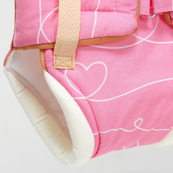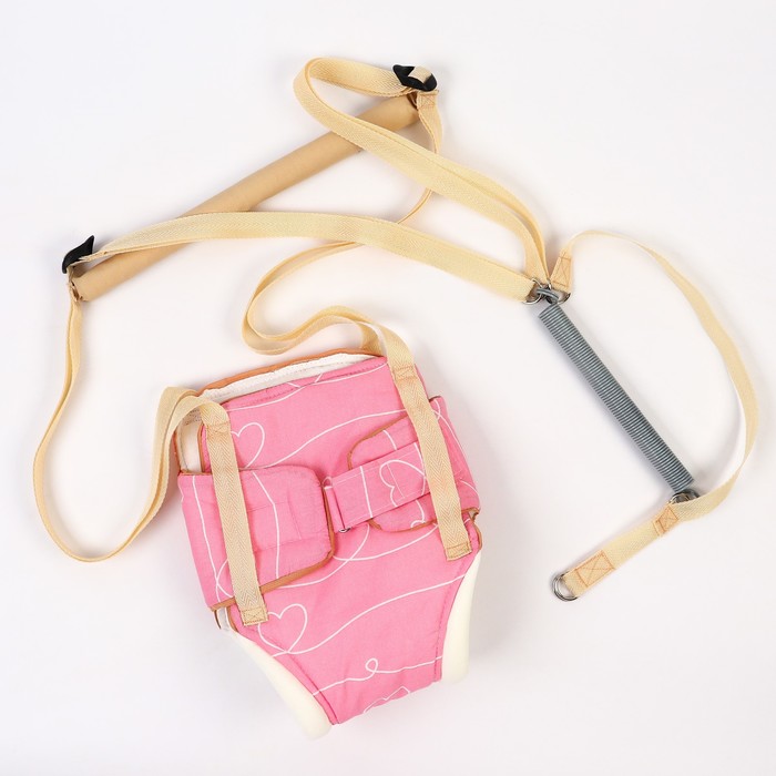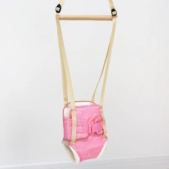 Посадите полугодовалого кроху в сиденье-штанишки. Малышу понравится активная игра, он будет подпрыгивать и качаться. Размер посадочного места можно настроить индивидуально, а за перекладину ребёнку будет удобно держаться.