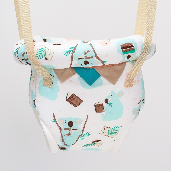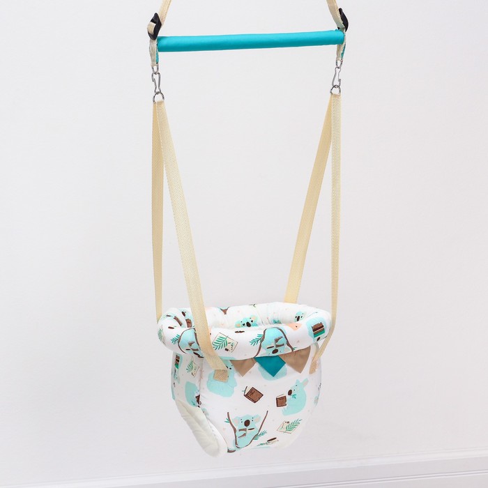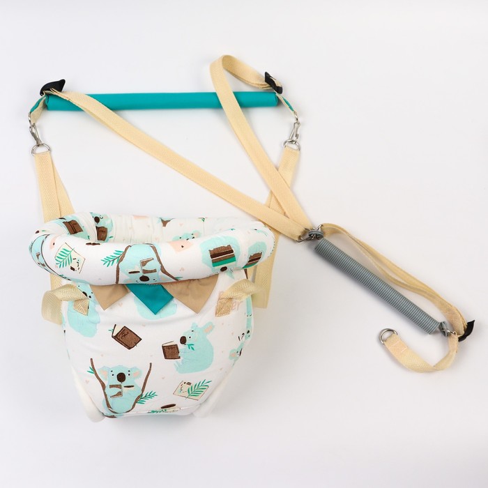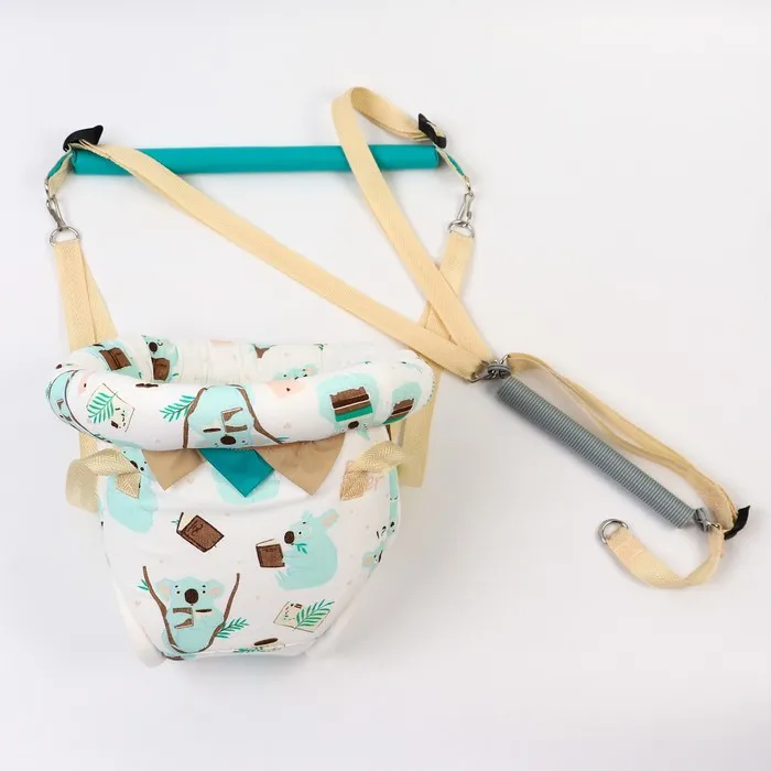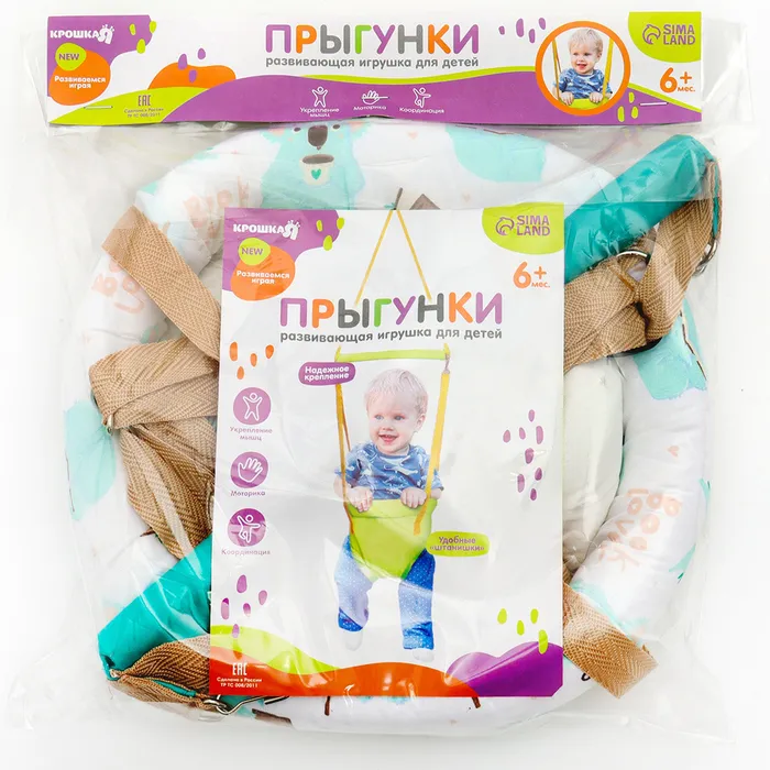 Посадите полугодовалого кроху в сиденье-штанишки. Малышу понравится активная игра, он будет подпрыгивать и качаться. Размер посадочного места можно настроить индивидуально, а за перекладину ребёнку будет удобно держаться.
