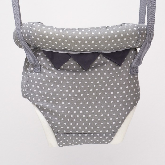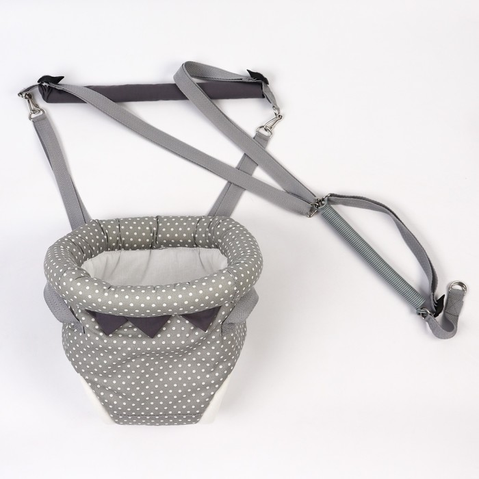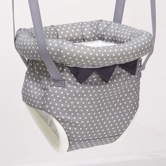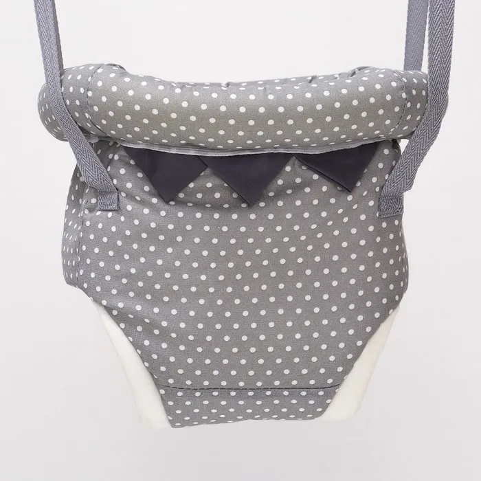 Посадите полугодовалого кроху в сиденье-штанишки. Малышу понравится активная игра, он будет подпрыгивать и качаться. Размер посадочного места можно настроить индивидуально, а за перекладину ребёнку будет удобно держаться.