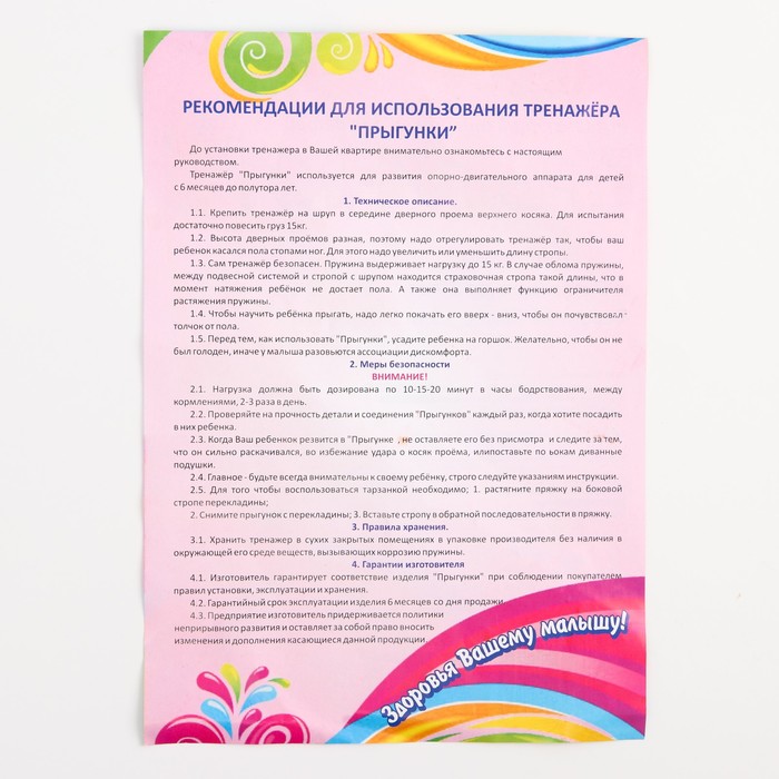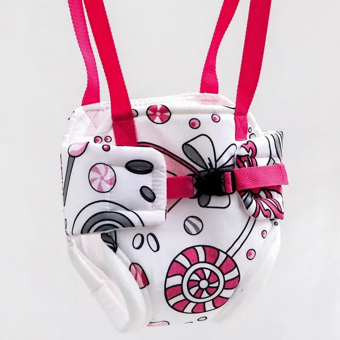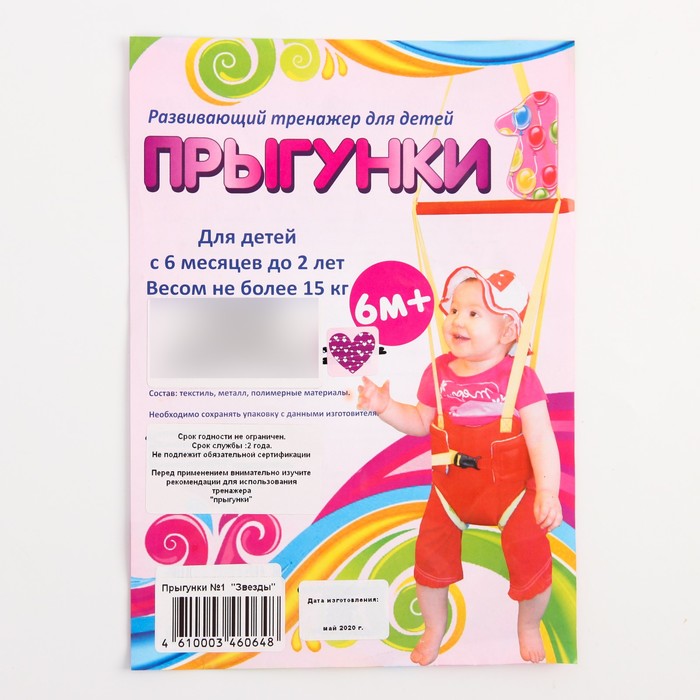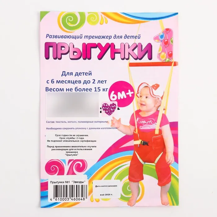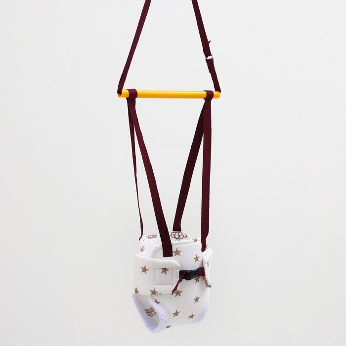 Посадите полугодовалого кроху в сиденье-штанишки. Малышу понравится активная игра, он будет подпрыгивать и качаться. Размер посадочного места можно настроить индивидуально, а за перекладину ребёнку будет удобно держаться.