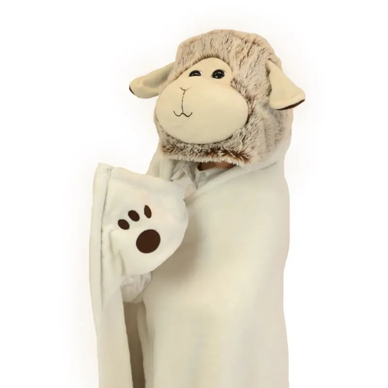 Носимое одеяло Cozy Noxxiez овечка изготовлено из сверхмягкого флисового материала. Теплое одеяло с капюшоном в виде животного имеет угловые карманы для рук. Забавное одеяло овечка подходит также для игр.