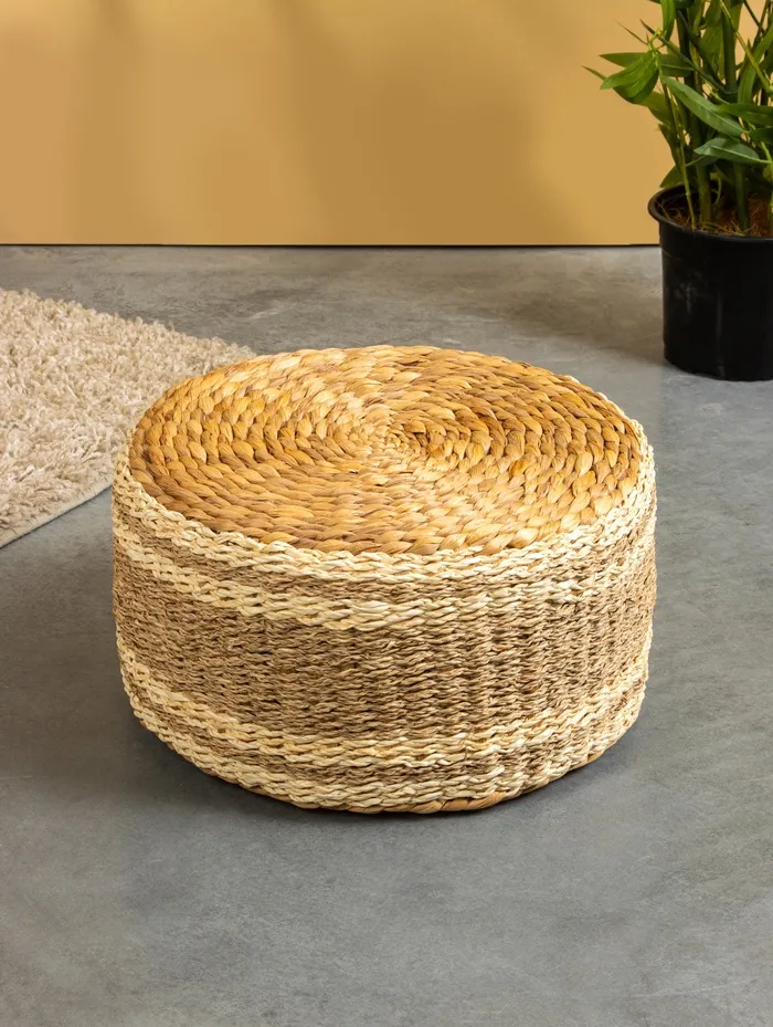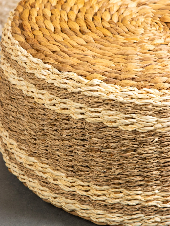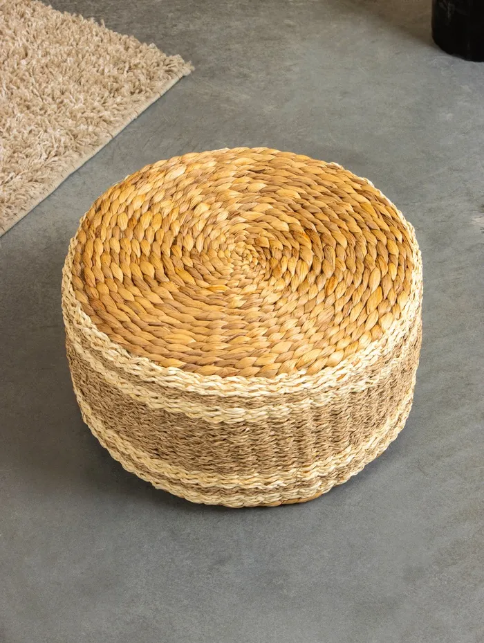 Экологичный пуфик из водного гиацинта и сиграсса — стильное и практичное решение для вашего интерьера. Круглая форма идеально впишется в любое пространство, добавив уюта и природной эстетики.