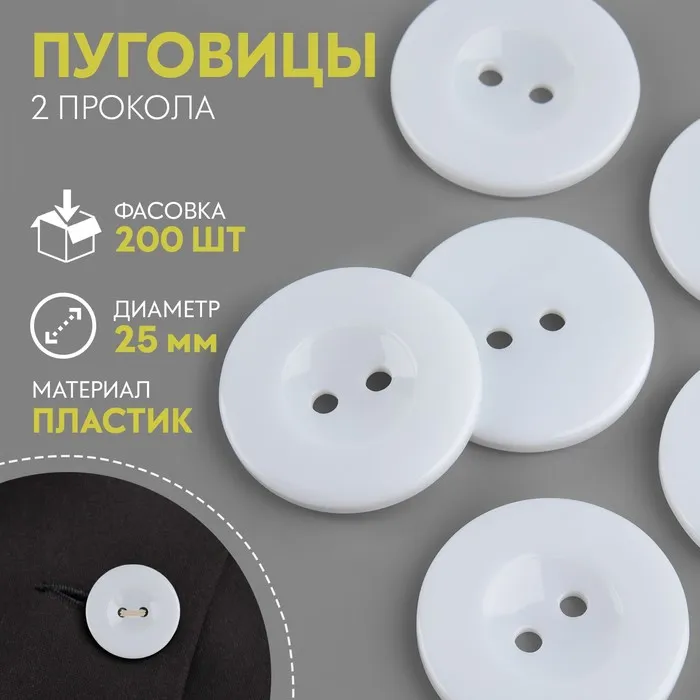 Пуговица 2 прокола, d=25 мм, белая — Характеристики