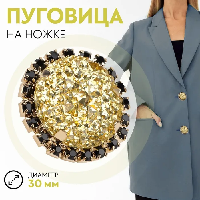 Декоративная металлическая пуговица диаметром 30 мм с эффектными стразами отлично дополнит верхнюю одежду и аксессуары. Ее стильный дизайн и прочная конструкция делают ее универсальным элементом для создания уникальных образов, а также для ремонта и декорирования одежды.