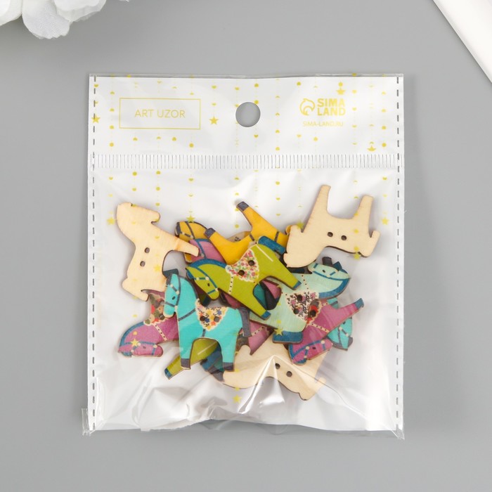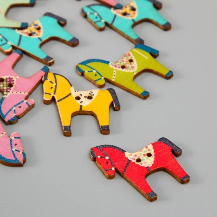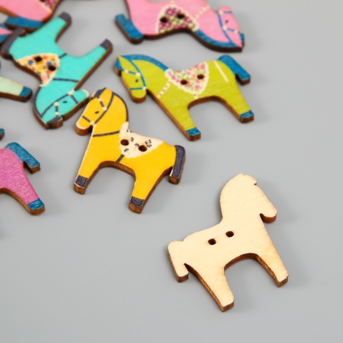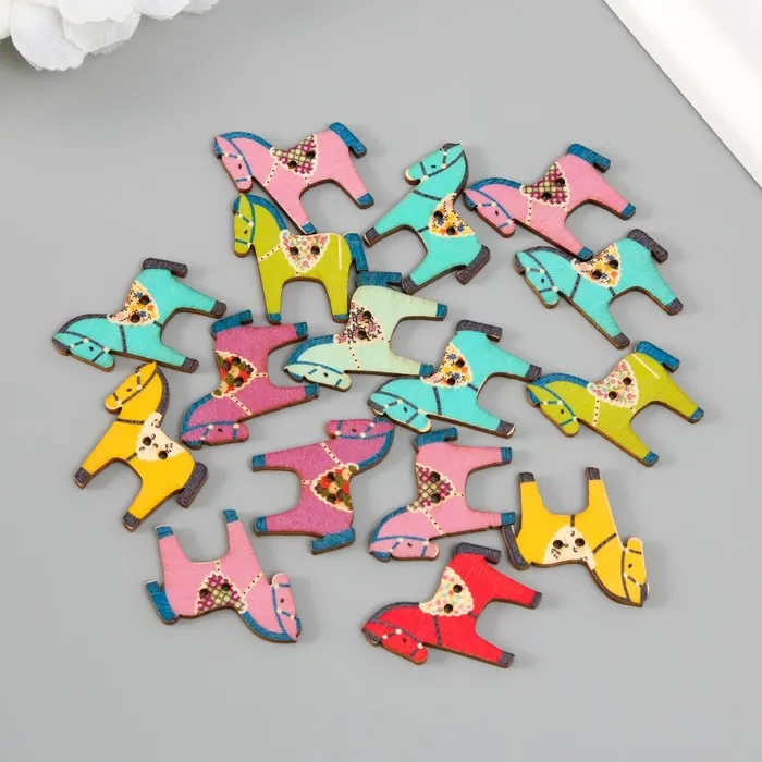 Пуговица дерево для творчества 2 прокола «Яркая лошадка», набор 16 шт., 3.1×2.7×0.2 см, МИКС — Характеристики