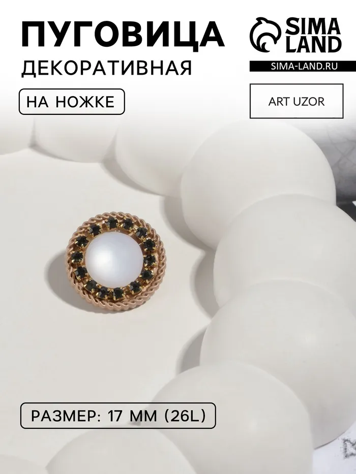 Пуговица на ножке, d=17 мм, цвет золотой, зелёный — Характеристики