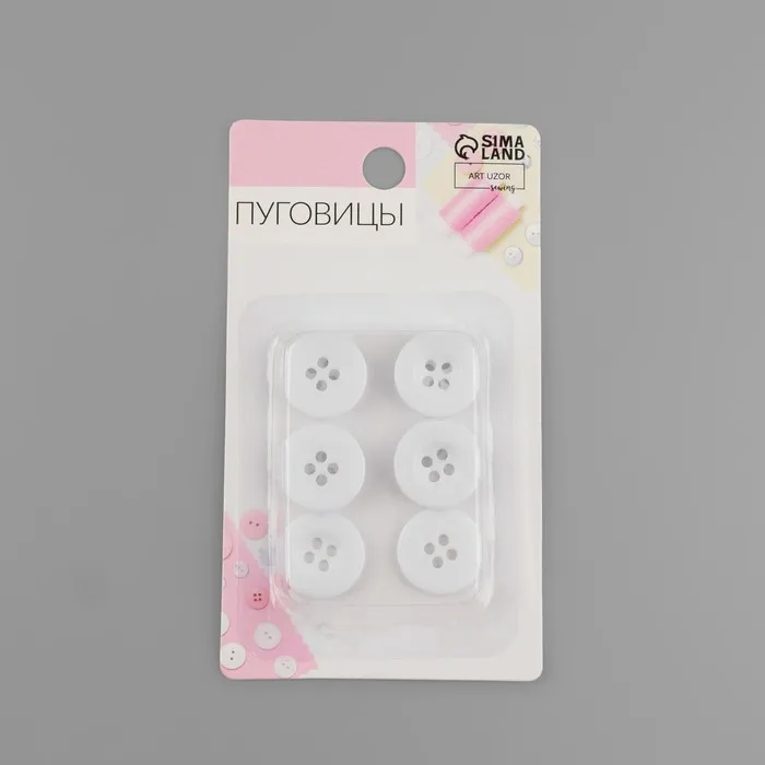 Пуговицы, 4 прокола, d=18 мм, набор 10 шт., белые — Характеристики
