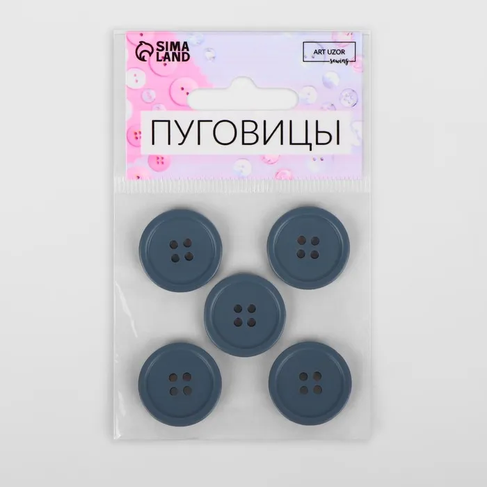 Пуговицы, 4 прокола, d=23 мм, набор 5 шт., матовые, серые — Характеристики