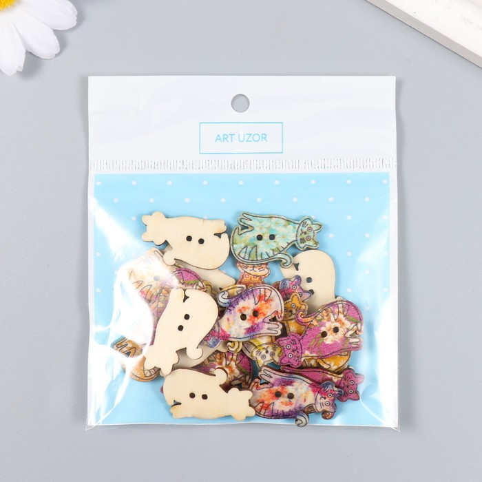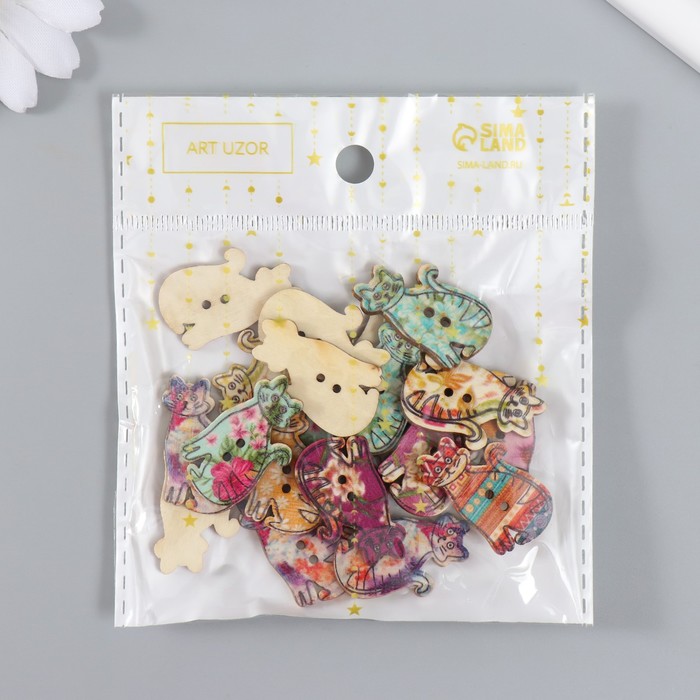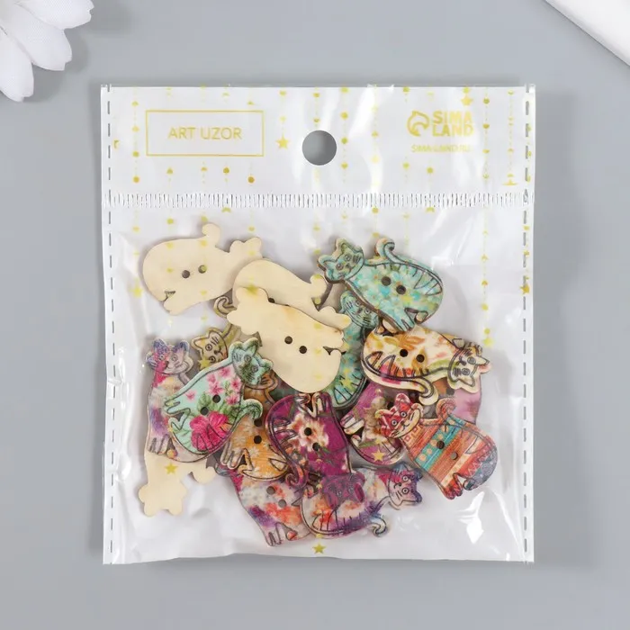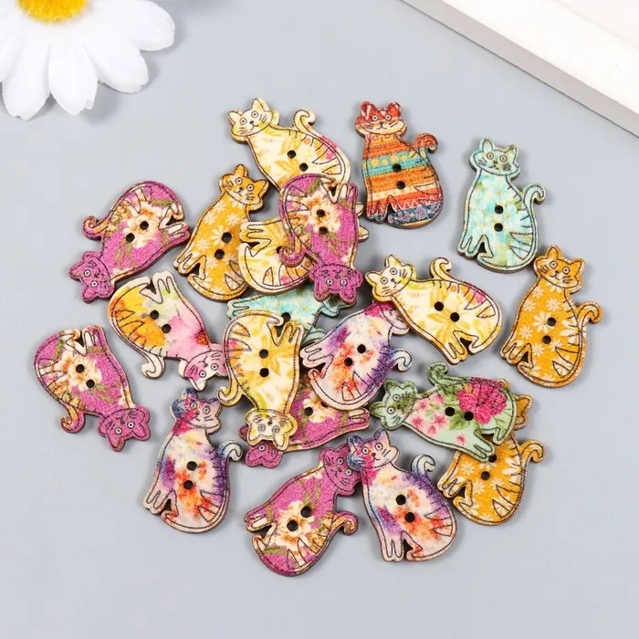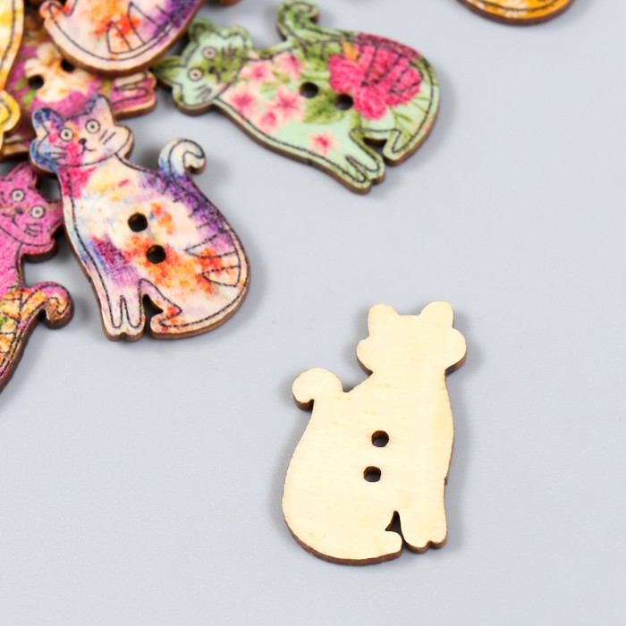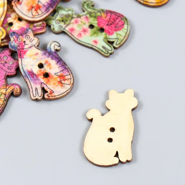 Пуговицы декоративные дерево 2 прокола «Яркие кошечки», набор 20 шт., 3×1.8 см — Характеристики