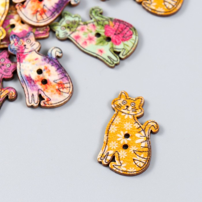 Пуговицы декоративные дерево 2 прокола «Яркие кошечки», набор 20 шт., 3×1.8 см